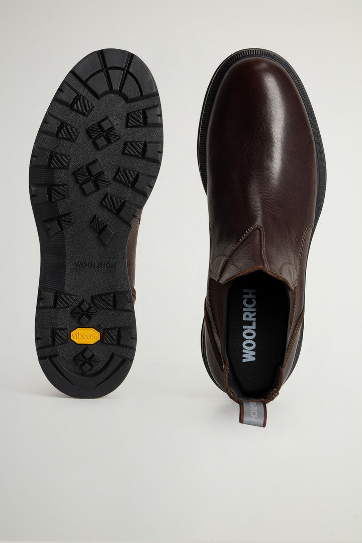 A timeless outdoor staple reimagined with refined craftsmanship that reflects the excellence of Made in Italy. The upper is crafted from hand-worked cowhide leather, enriched with exposed stitching and a heat-embossed “Wâ€?on the side. The tonal elastic insert and reflective loop at the back, personalized with a screen-printed logo, offer practical functionality. Cotton herringbone binding underscores the attention to detail. The exclusive Woolrich Wool City outsole, inspired by the 1937 Vibram “Carrarmato,â€?features a Buffalo Check tread and a dual-density compound: Megagrip rubber for grip and lightweight PU for cushioning. Removable insole for enhanced comfort.